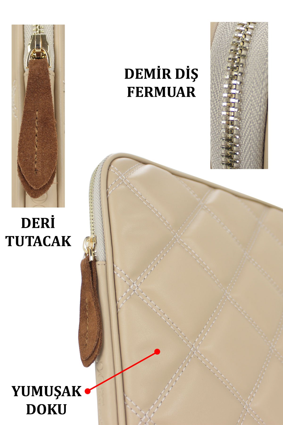 (-) Fermuar çekme tutacağı deridir