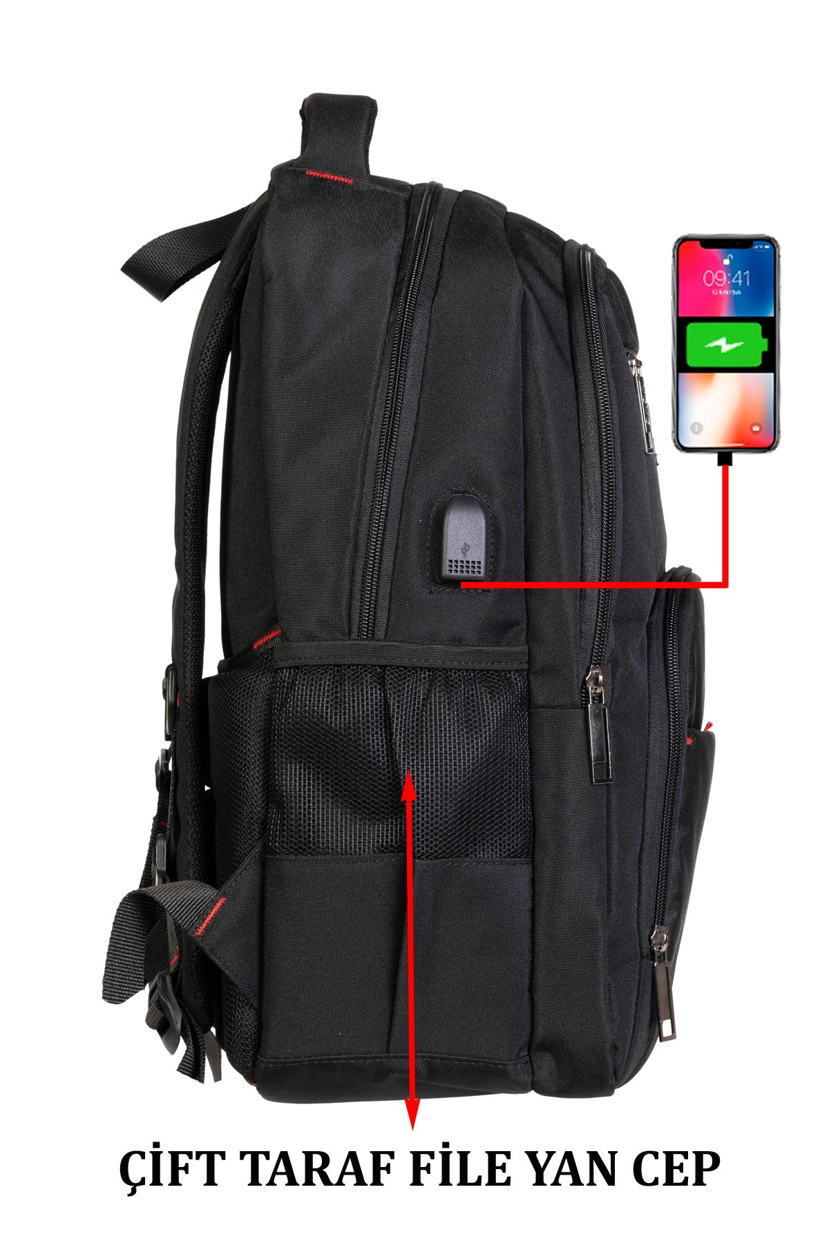(-) Ön fermuarlı cep içerisin de organizer bölme bulunmaktadır