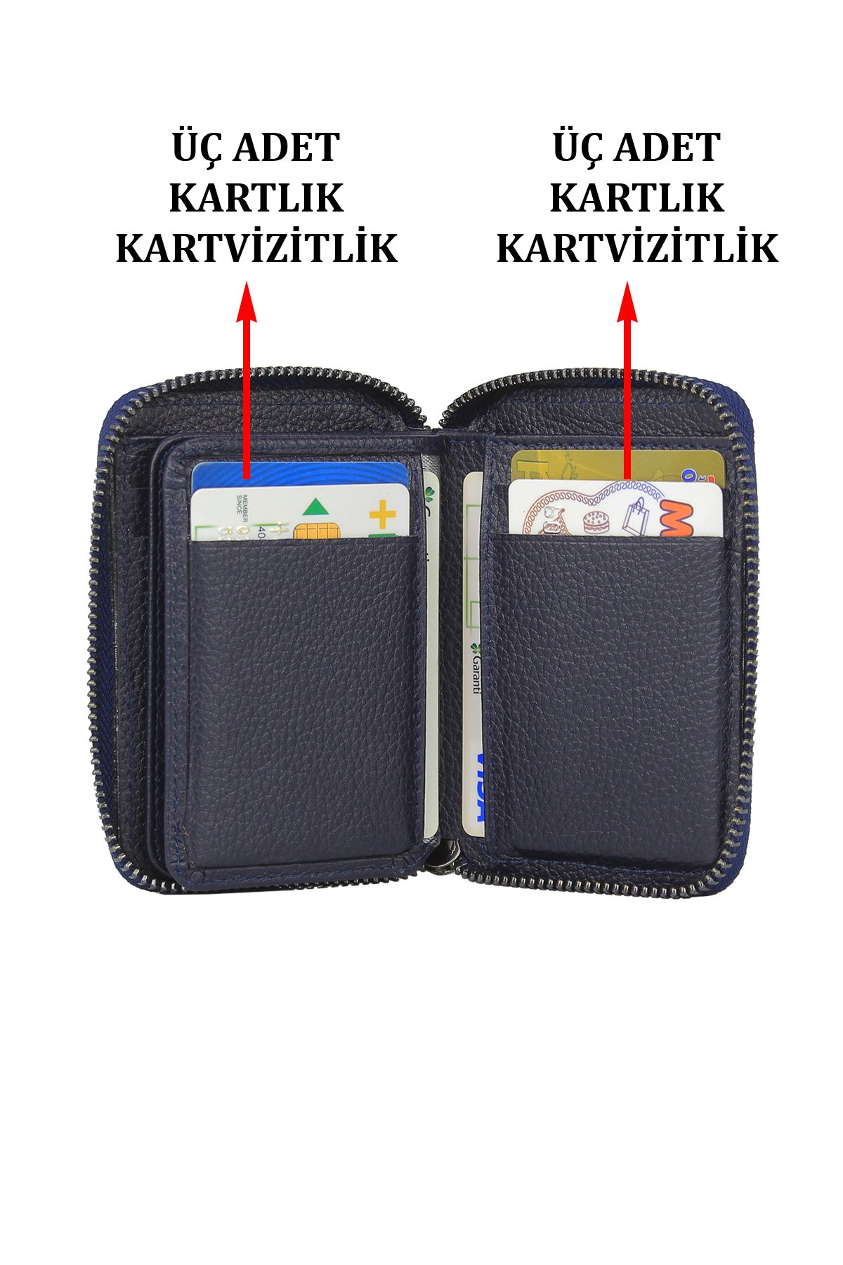 Case Club Hakiki Deri Fermuarlı Erkek Kartlık Ehliyet Kimlik Ve Kağıt Para Bölmeli Lacivert