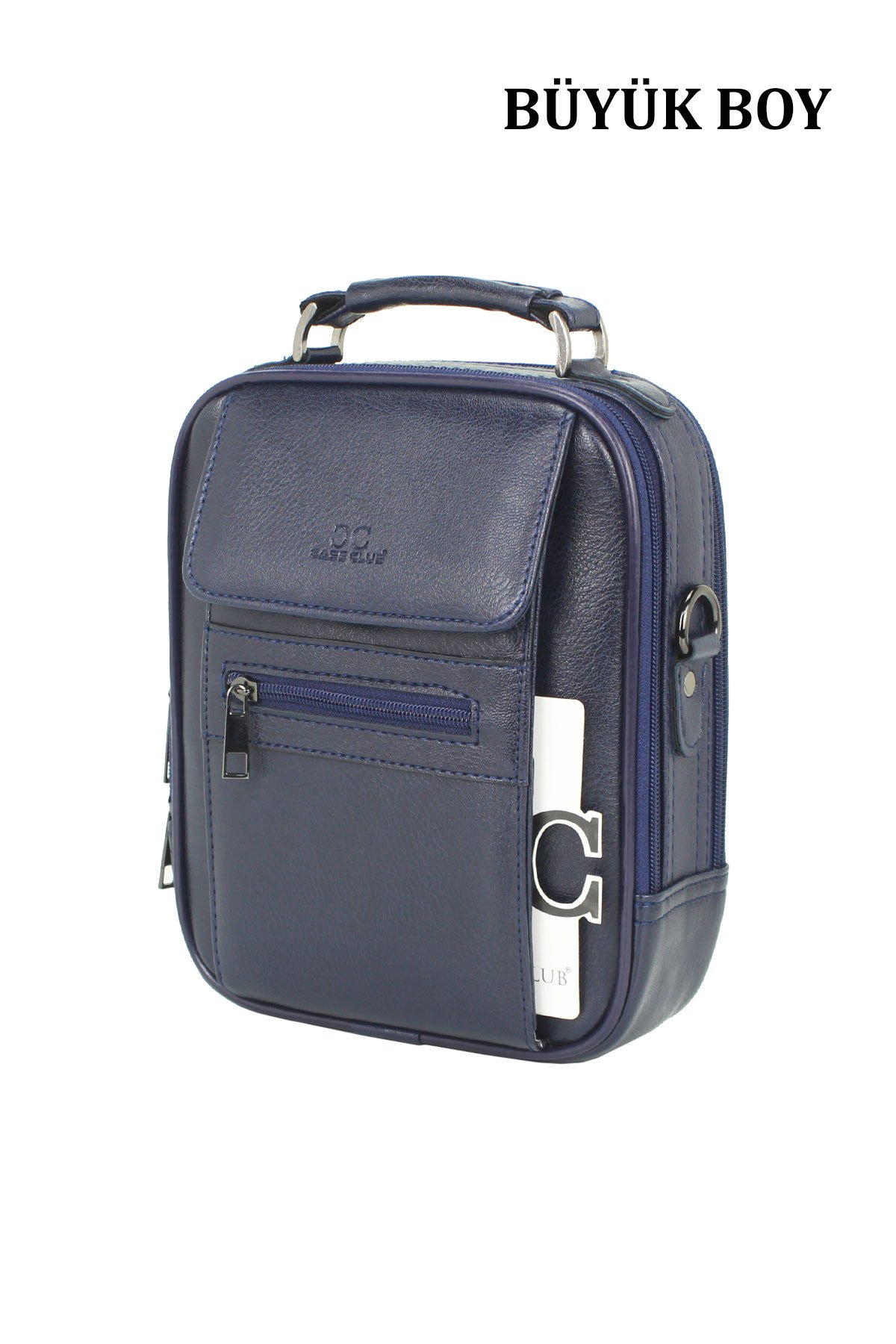Kasalı Erkek Omuz ve El Çantası Metal Gövde Omuz Askılı Su Geçirmez Lacivert